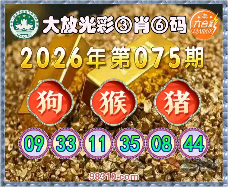 075期: 《大放光彩》 ③肖⑥码【狗猴猪】开:狗33准验证上榜