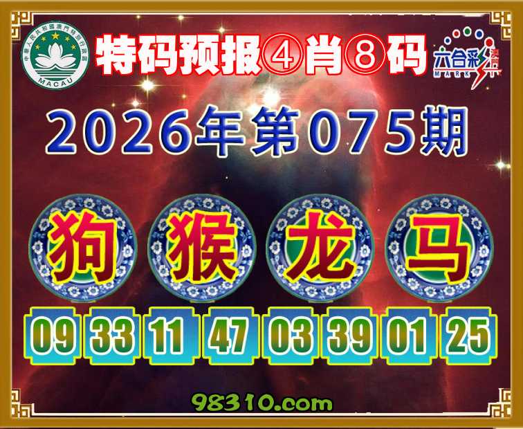 075期: 《特码预报》 ④肖⑧码【狗猴龙马】开:狗33准验证上榜