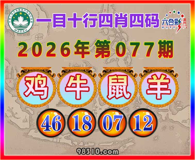 077期:〖一目十行〗 四肖四码【鸡牛鼠羊】【46.18.07.12】开:00准